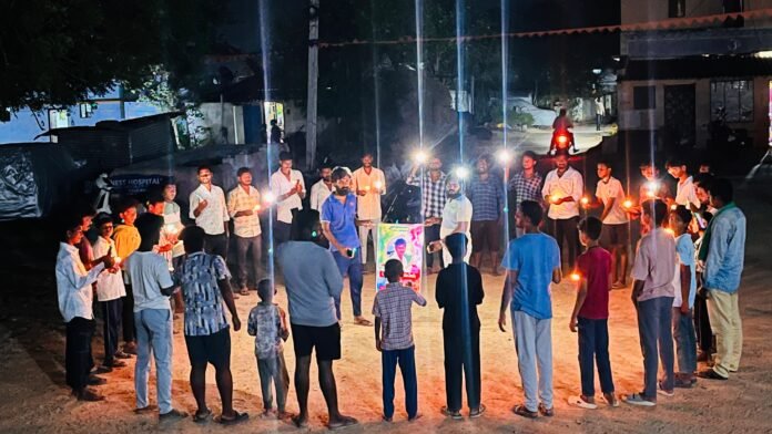 మహేష్ ఆత్మకు శాంతి చేకూరాలని కోరుతూ గ్రామ యువకులు క్యాండిల్ ర్యాలీ నిర్వహించి ఘన నివాళులు అర్పించారు. గ్రామ వీధుల గుండా నిశ్శబ్దంగా సాగిన ఈ ర్యాలీ లో యువత చేతుల్లో వెలిగించిన కొవ్వొత్తులు మహేష్ జ్ఞాపకాలను ప్రతిబింబించాయి. ప్రతి అడుగులోనూ కనిపించిన బాధ, కన్నీటి తడి… గ్రామం మొత్తం ఒకటై అతనికి వీడ్కోలు పలికిన దృశ్యంగా నిలిచింది.